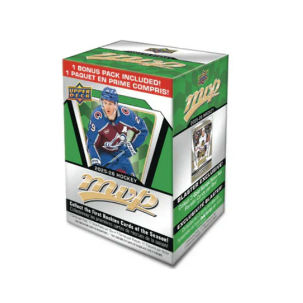 The 2025-26 Upper Deck MVP Hockey Blaster offers collectors a premium selection of hockey cards featuring top prospects, rookies, and established stars. Designed for fans who appreciate quality and potential value, this blaster pack delivers a mix of base cards and exciting inserts, giving you a chance to uncover rare parallels and autographed memorabilia cards. Ideal for enhancing your collection or starting one, it combines the thrill of the hunt with the prestige of an Upper Deck MVP release.